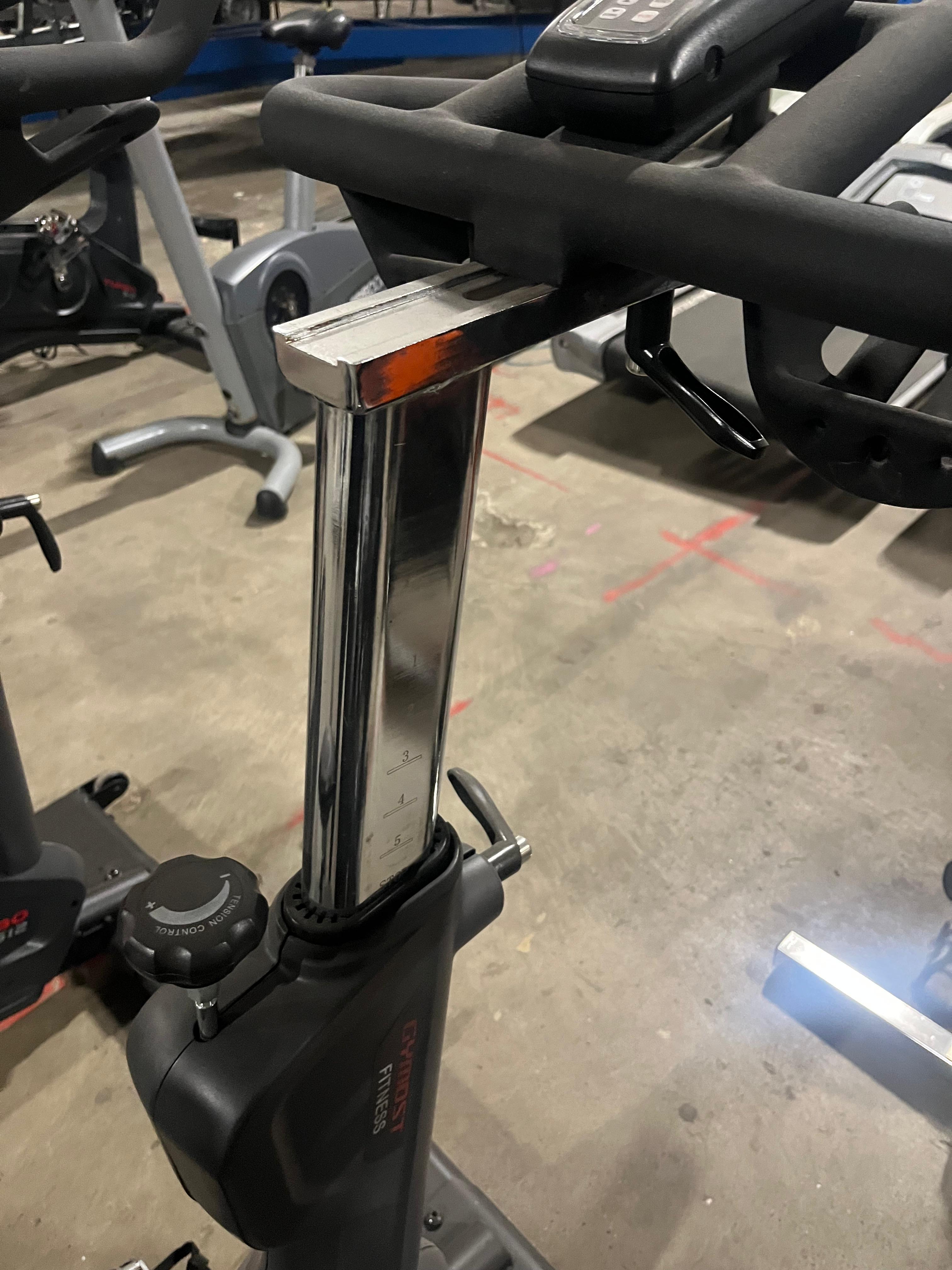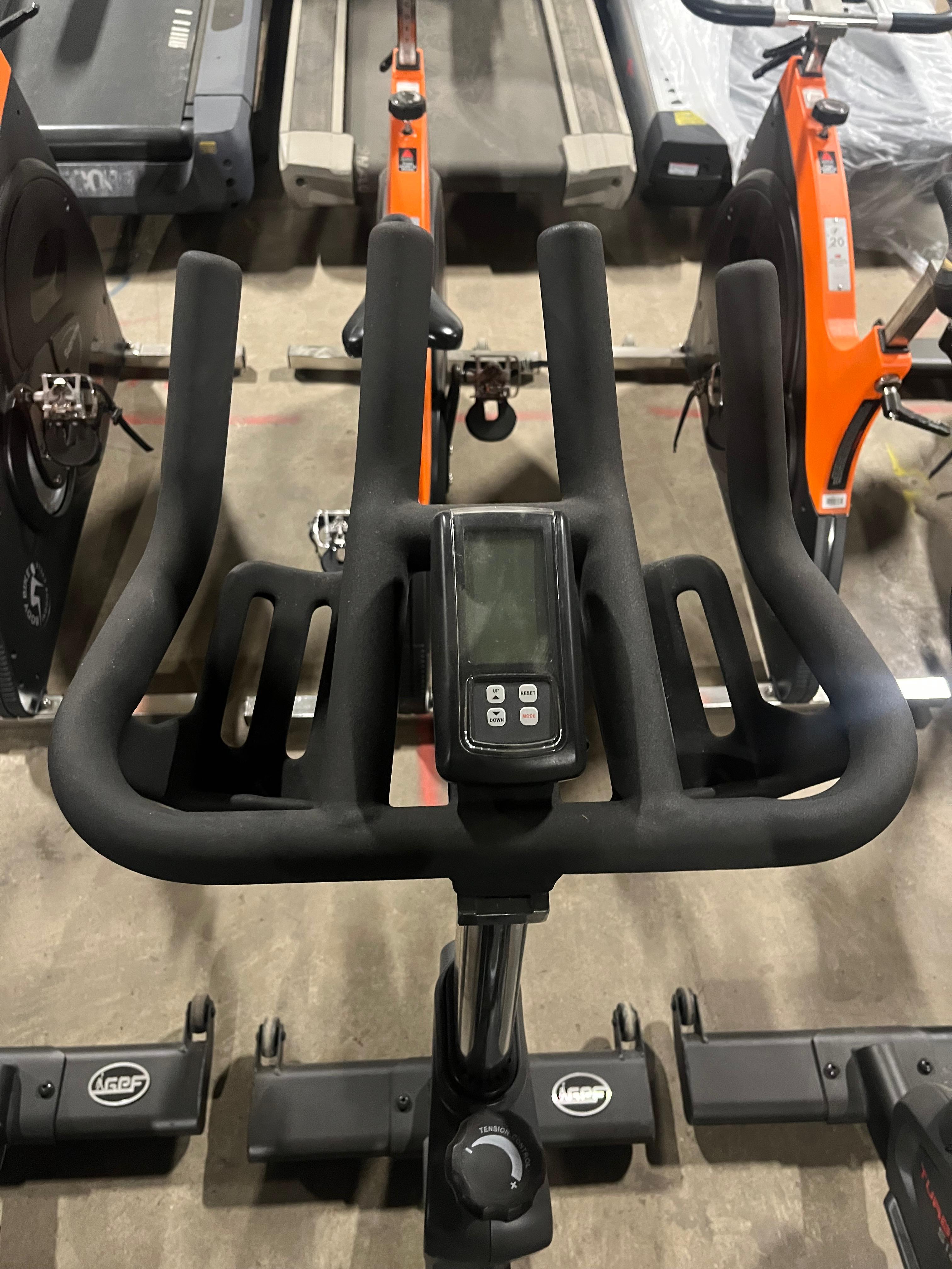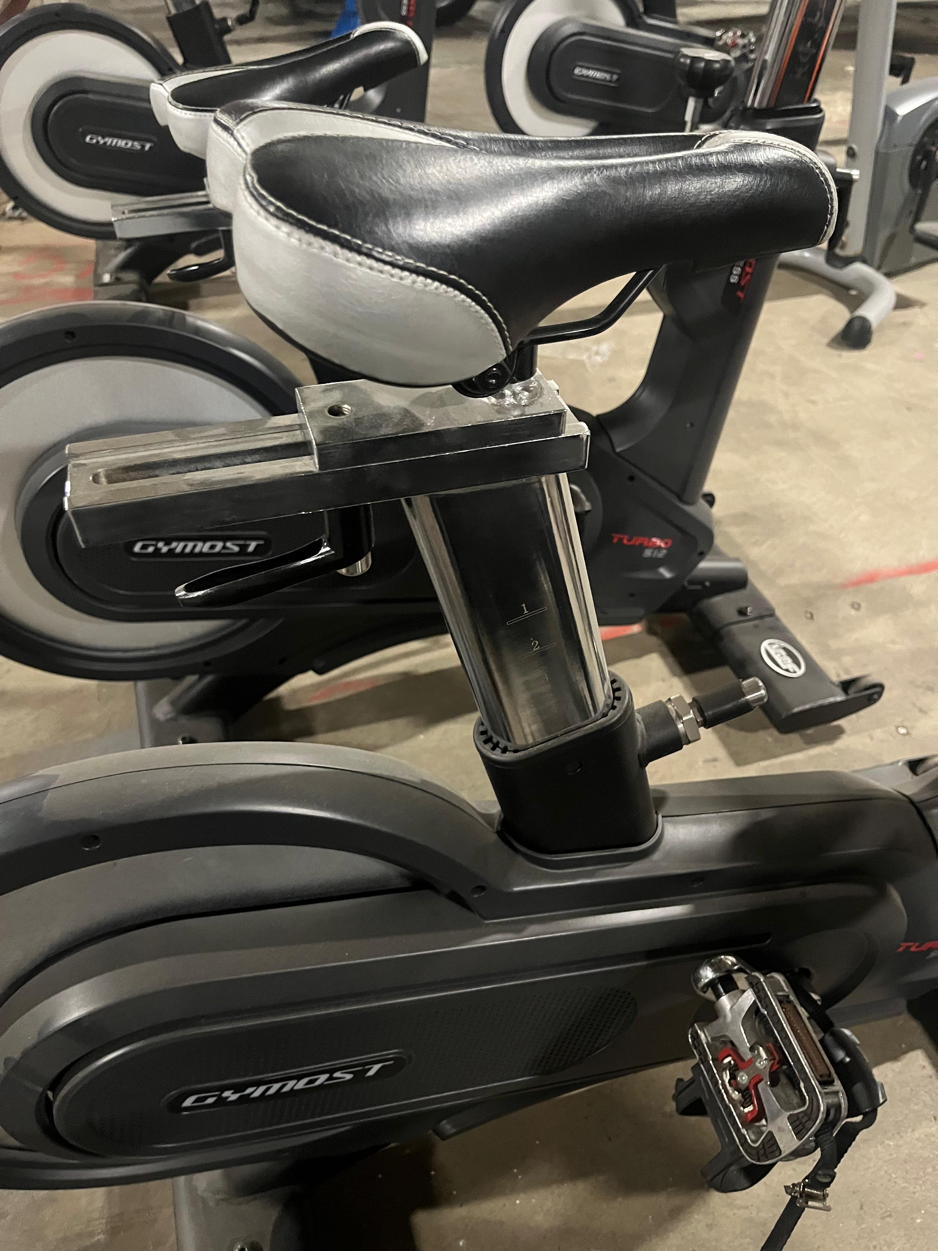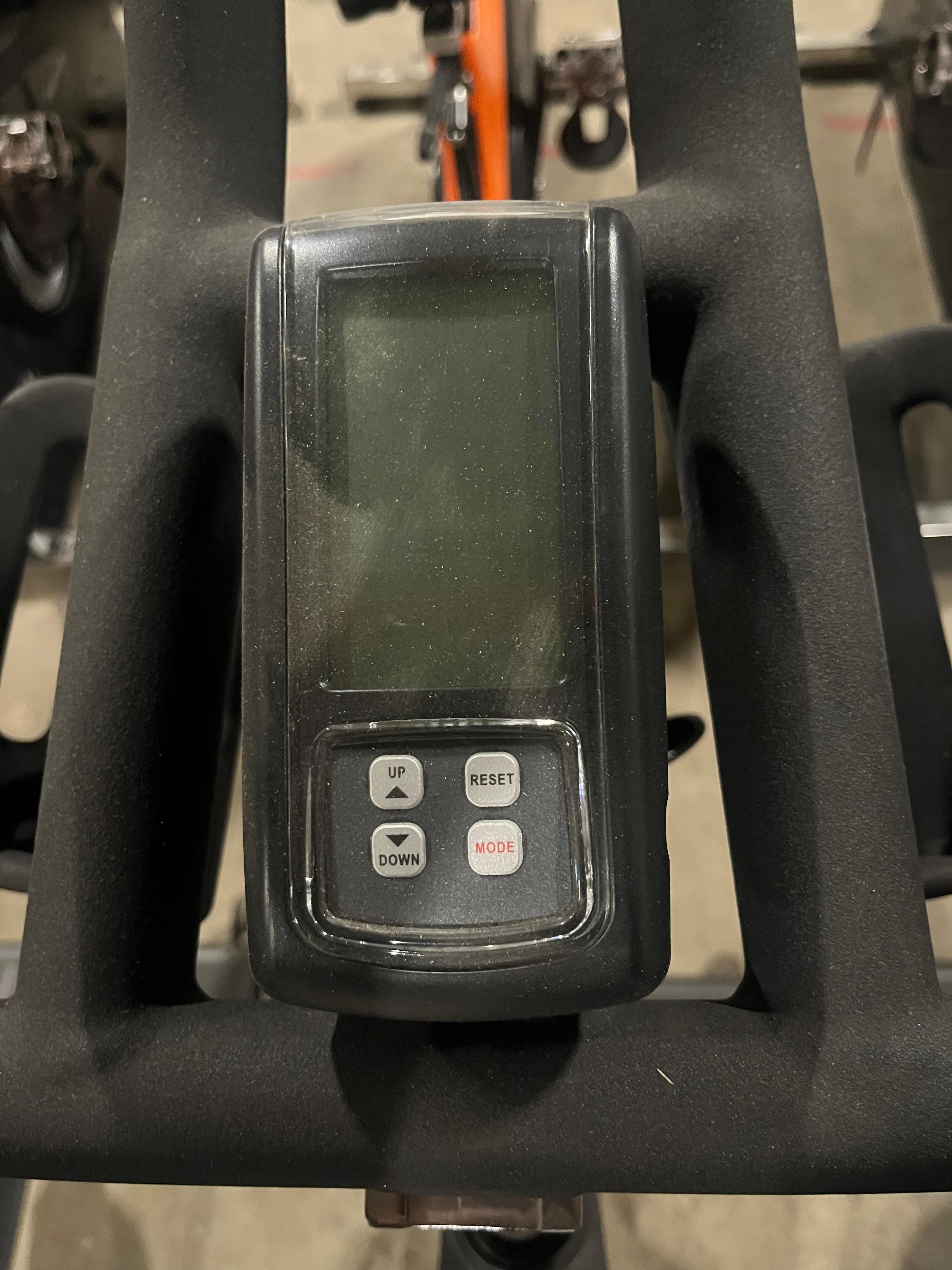 Käytetty Gymost spinning pyörä. Pyörän näyttö ei toimi. Penkin & käsinojan korkeus- ja etäisyyssäätö. Laitteessa käytön jälkiä.