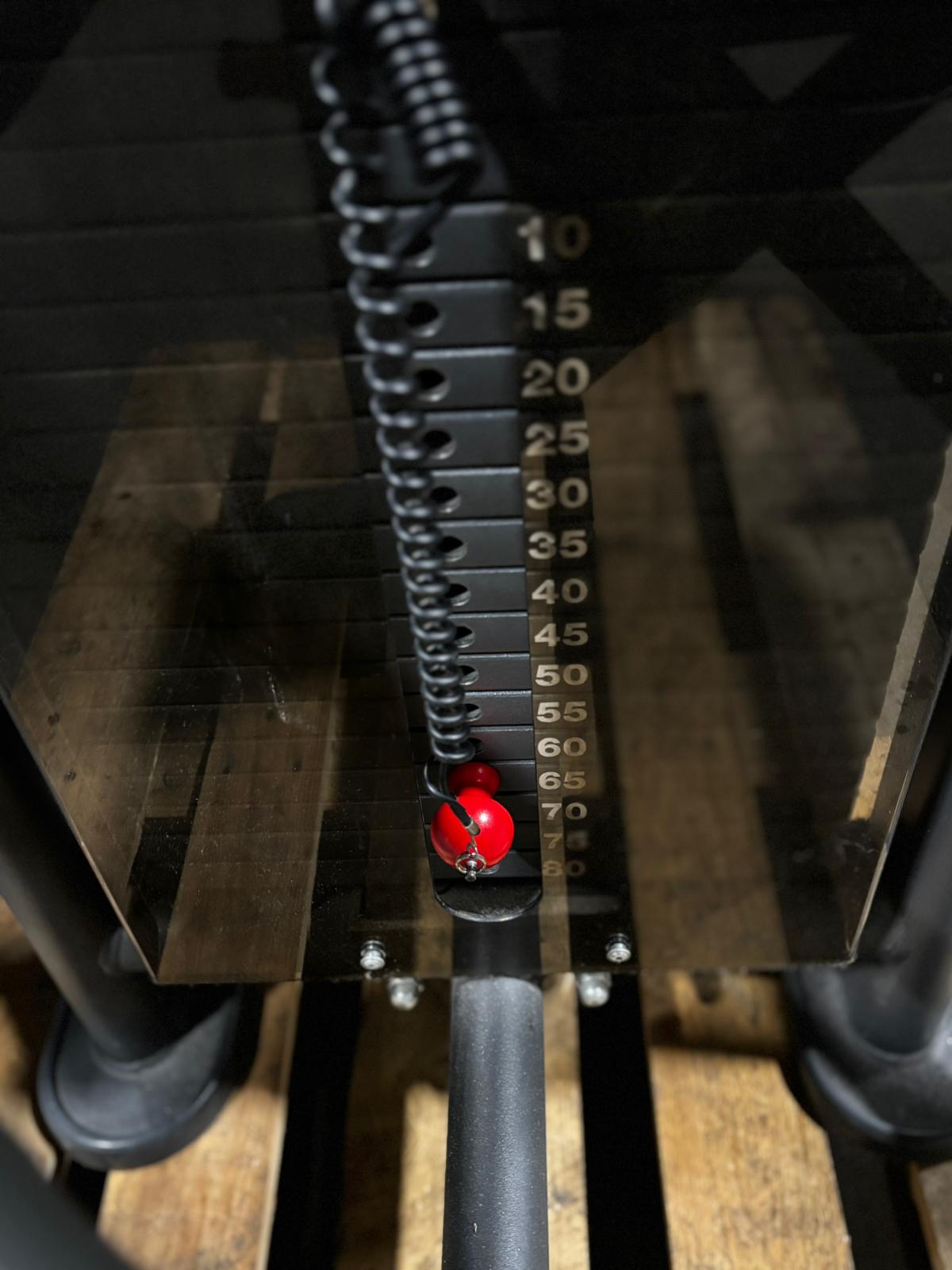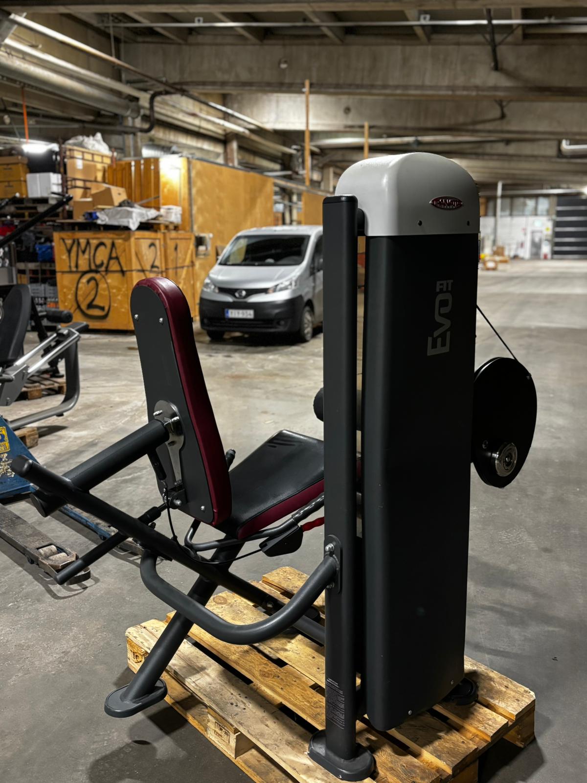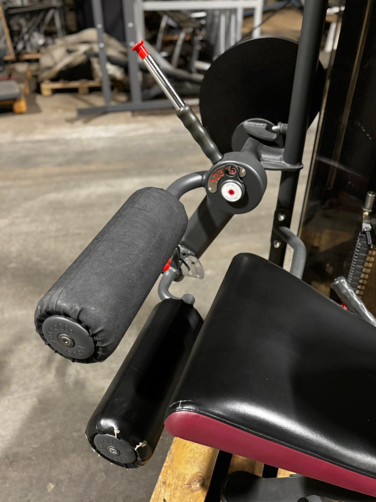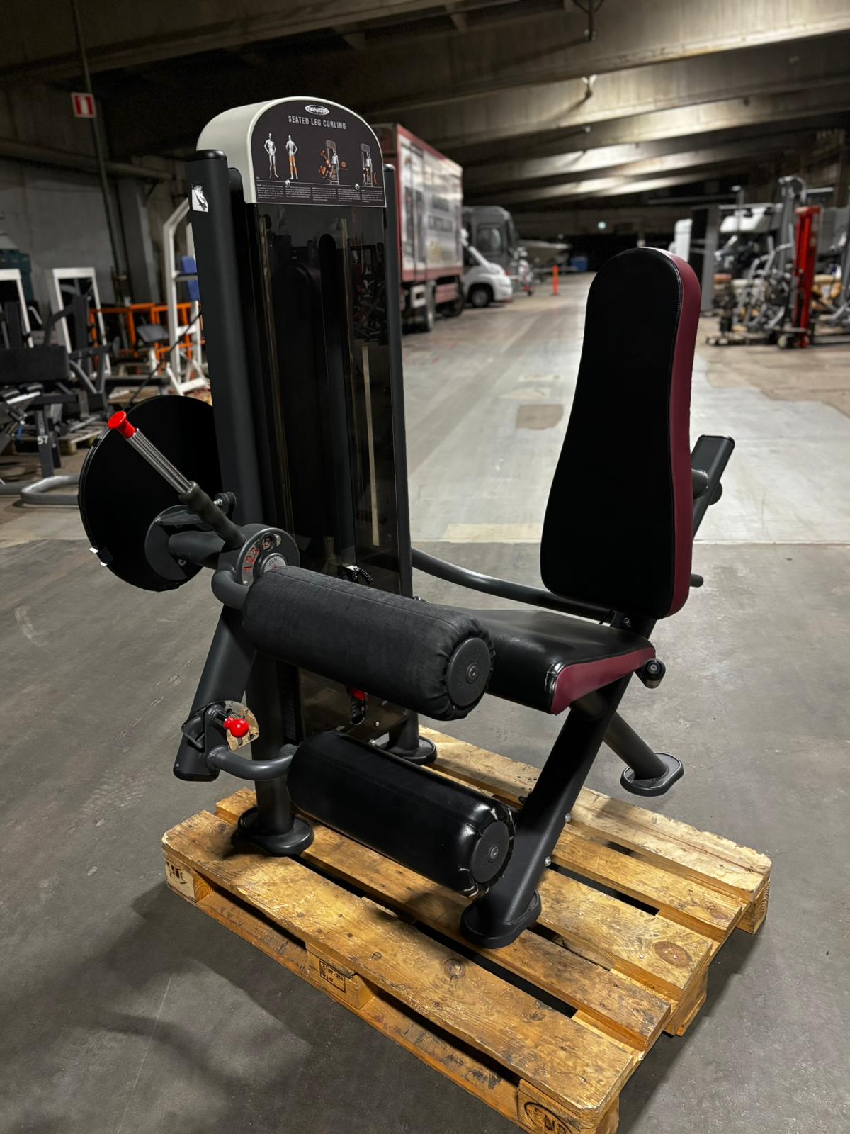 Käytetty Panatta painopakallinen reiden koukistuslaite istuen. Ominaisuuksia laitteessa säädettävä selkänoja ja jalkavastukset, 80 kg painopakka.