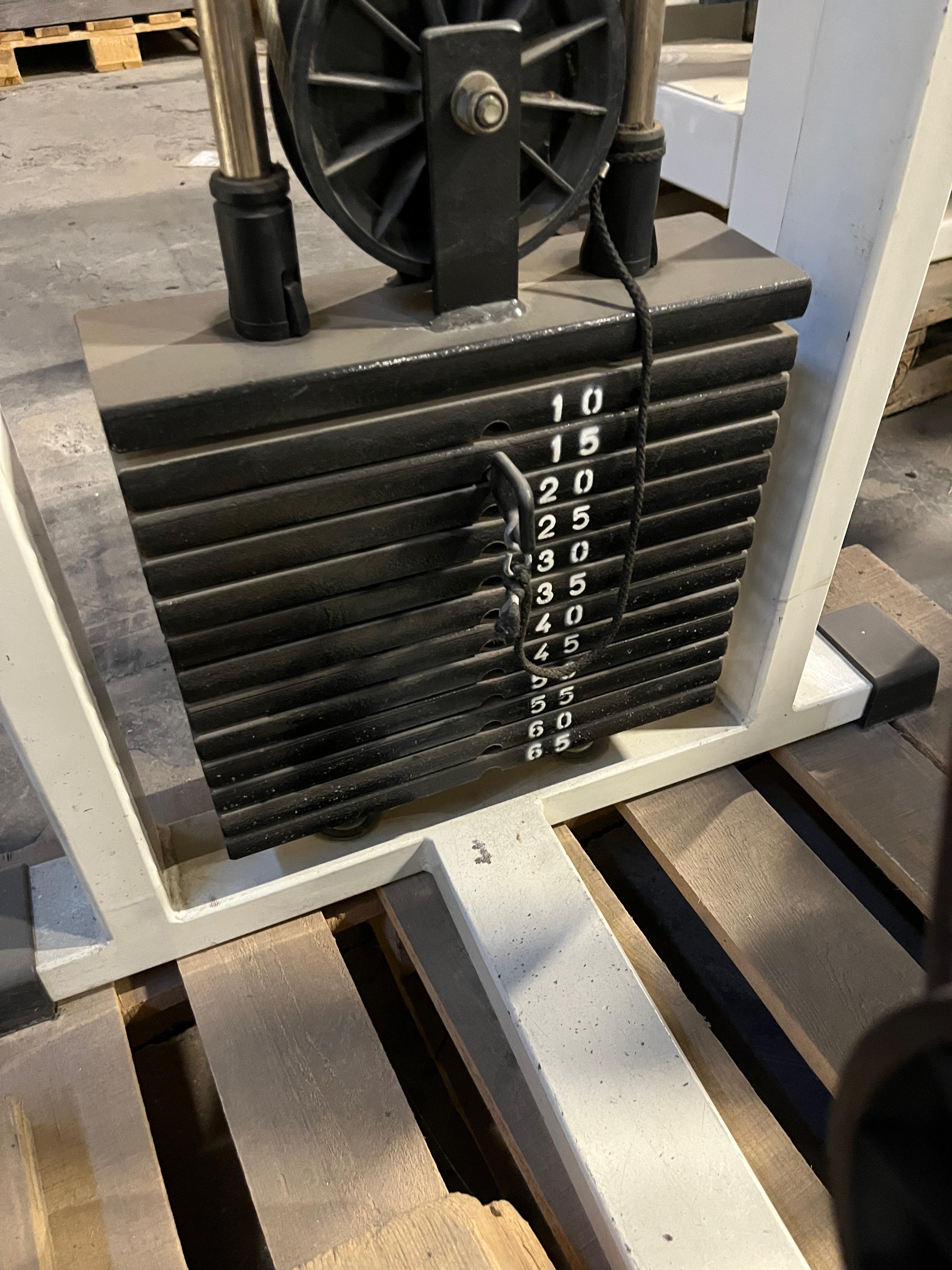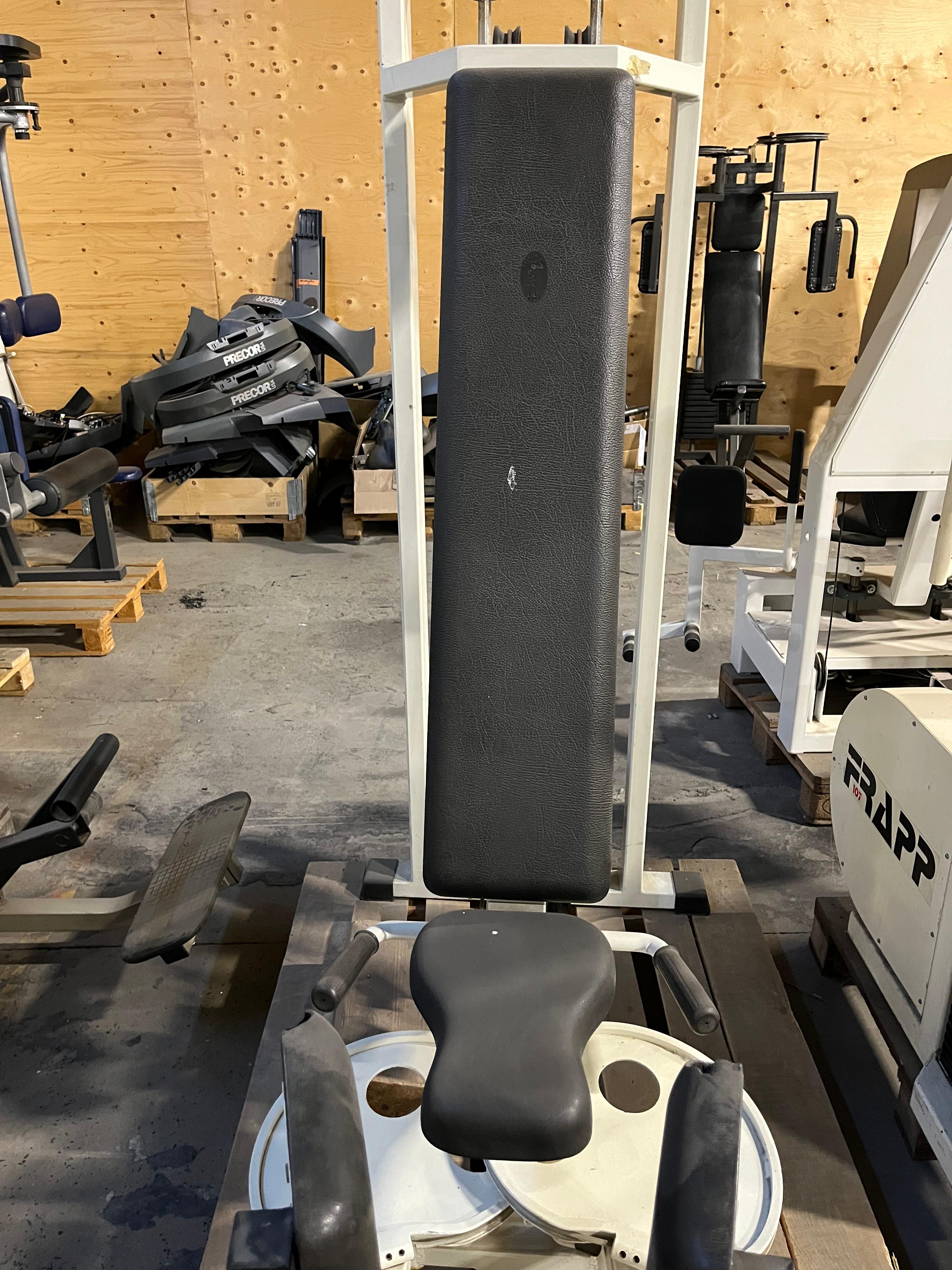 Käytetty vintage Panatta reiden loitonnuslaite 65 kg painopakalla.