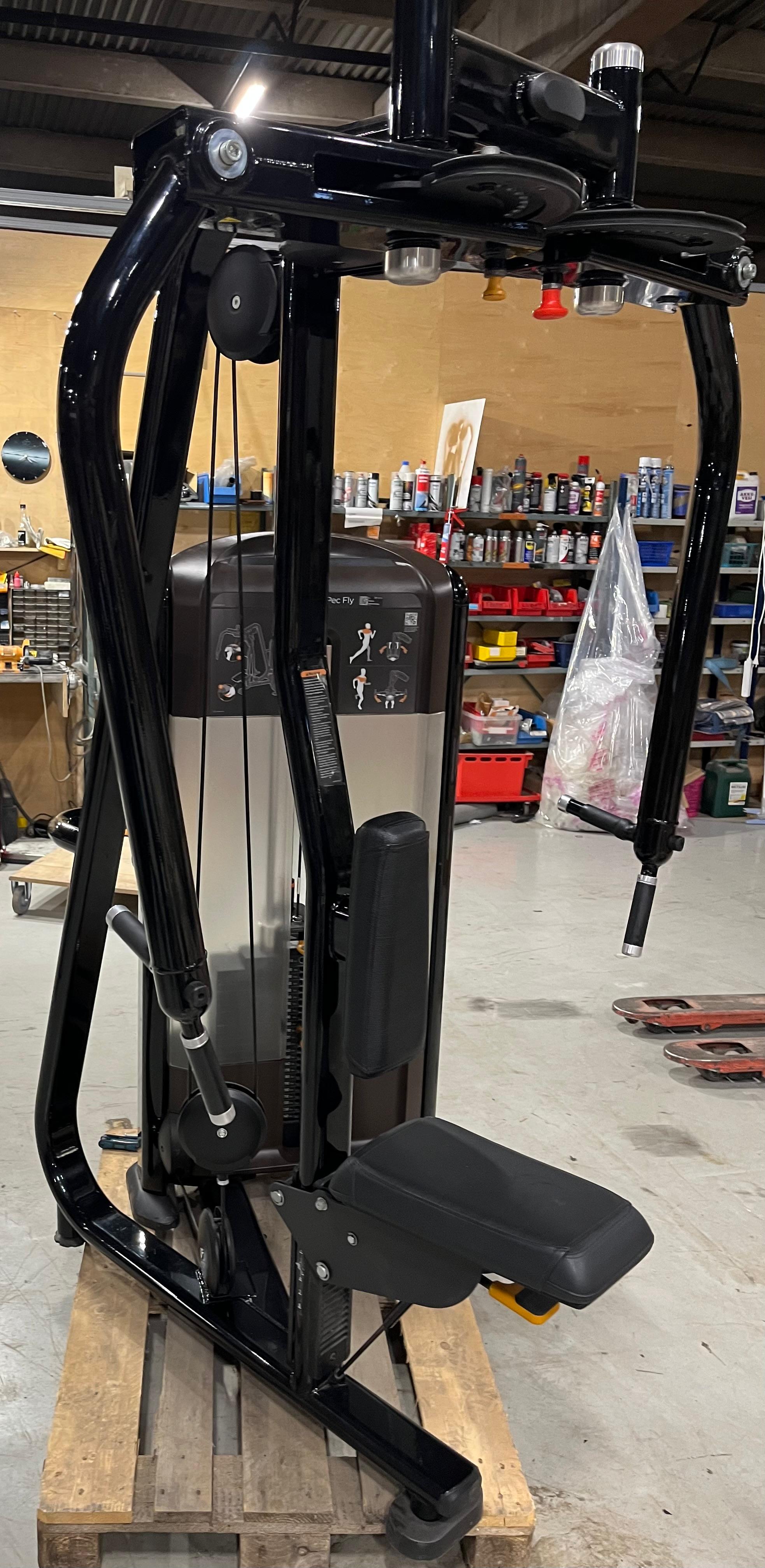 Käytetty Precor Pec fly / rear delt painopakallinen kuntosalilaite. Painopakkaa laitteessa 109 kg.