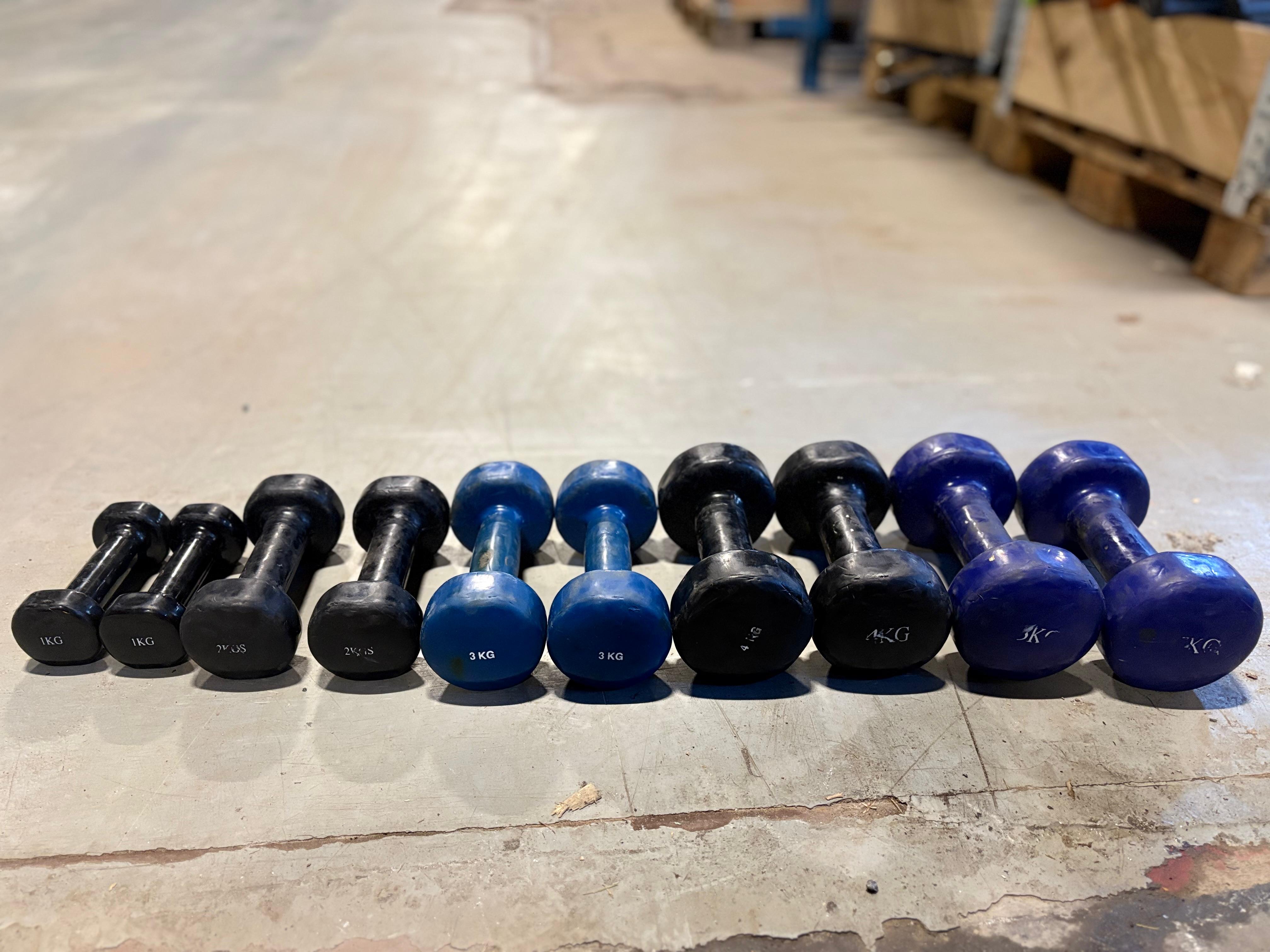 Vinyylikäsipainosetti 1-5kg, käytetty